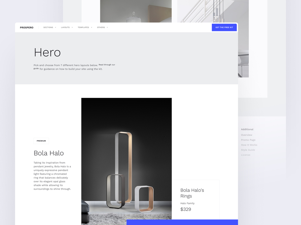 Don't miss out on this opportunity to download the Prospero UI Kit and elevate your online store with its 85 sections and 10 layouts showcasing large photos, sleek typography, and plenty of white space to keep the attention on your products and brand.